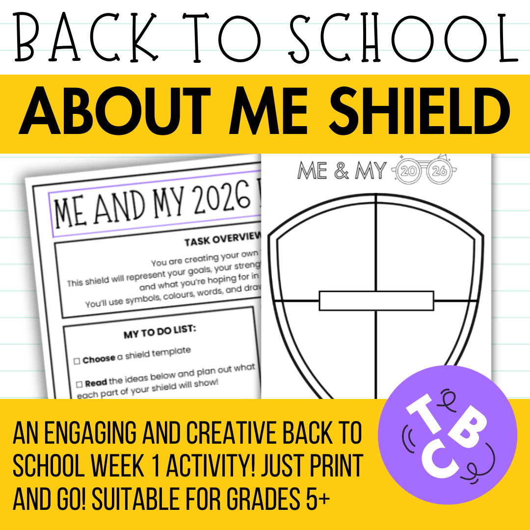 ThisĀ About Me ShieldĀ is the perfect way for your students to express themselves, get to know one another, and set goals for the year ahead!