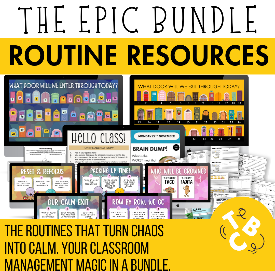 The Epic Routines Bundle gives you the ready-to-use tools that sprinkle calm, clarity, and consistency over every part of your lesson so you can finally teach instead of firefight low-level disruption.