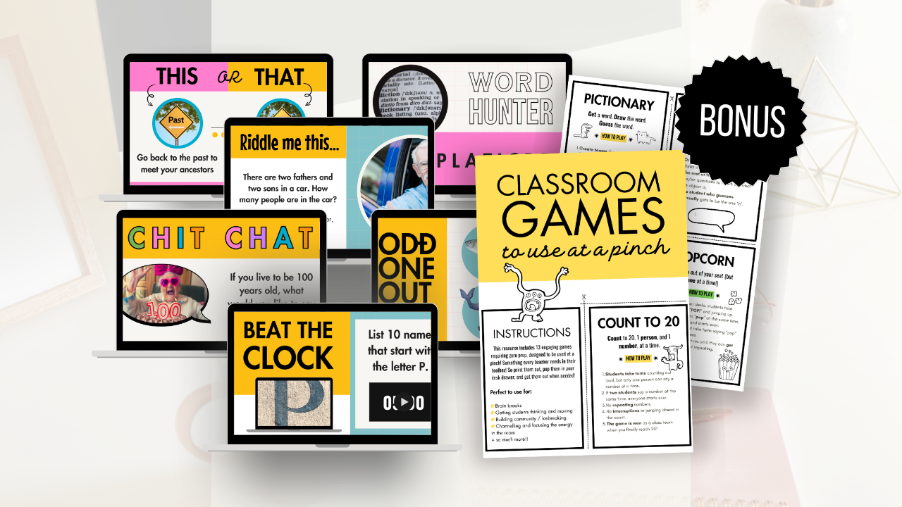+ BONUS: - Classroom games to use at a pinch cards (13 engaging no-prep games) - $10